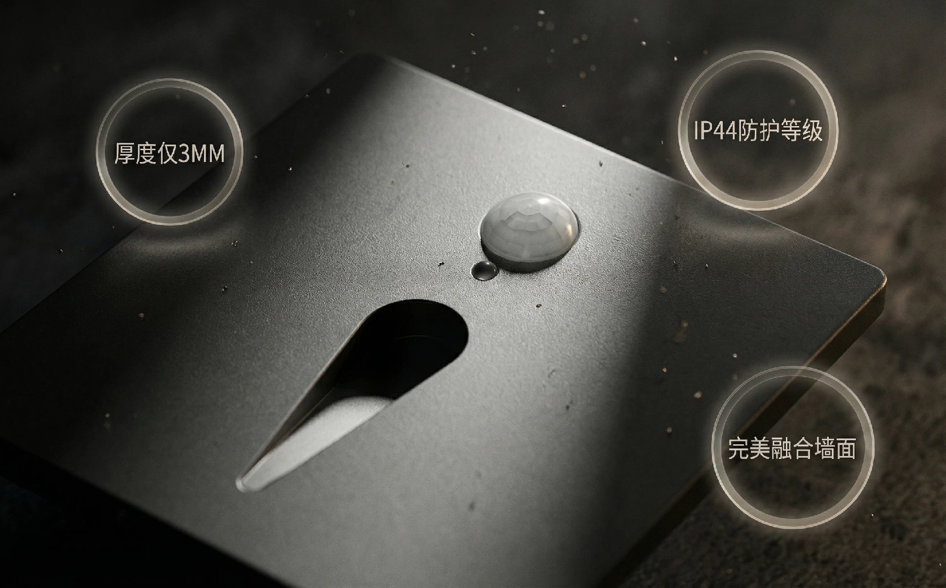 不锈钢面板控制方式:人体感应+光控功率:2W显指:90角度:120° 距离:1-5米延迟:30秒 光照:10Lux电压:110/240V 5/60HZ色温:3000K/4000K安装方式:嵌入式+86底盒多功能集于一身-100度感应区 广角扇形感应区域-2.5M探测范围 通过红外线人体感应控制,感应到人自动亮起-明暗光线感应 当环境照度≤10LUX梯步灯受控亮起-30S亮后延时 灯亮后,有30秒延点亮功能,过后自动灭灯 -建议安装距离 灯具安装离地面距:30CM内-防护等级IP44 防尘>1.0mm的固体,防溅:安装号后任何方向溅水应无有害影响-超薄灯体(3MM) 完美与墙壁融合